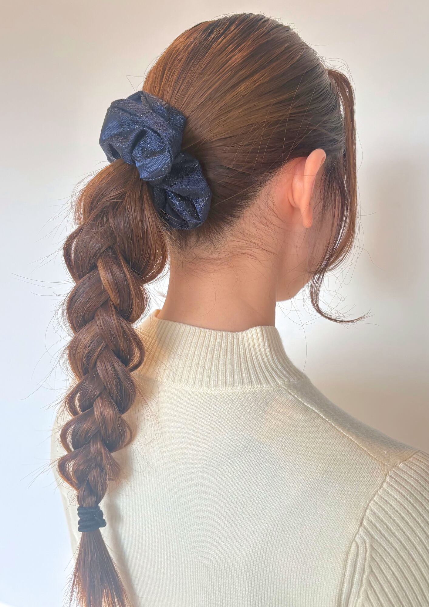 上品なデザインをファッションに取り入れたい方や、大人の女性におすすめのジャガードシュシュです。シンプルながらも、ドレス生地ならではの上品な輝きがプラスされ、一気に高貴な印象に。光に当たるとより華やかに輝きます。また、流行に左右されないカラーとデザインで、さまざまなシーンで活躍します。