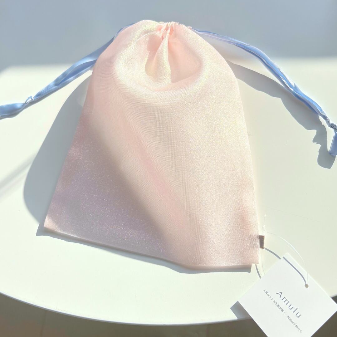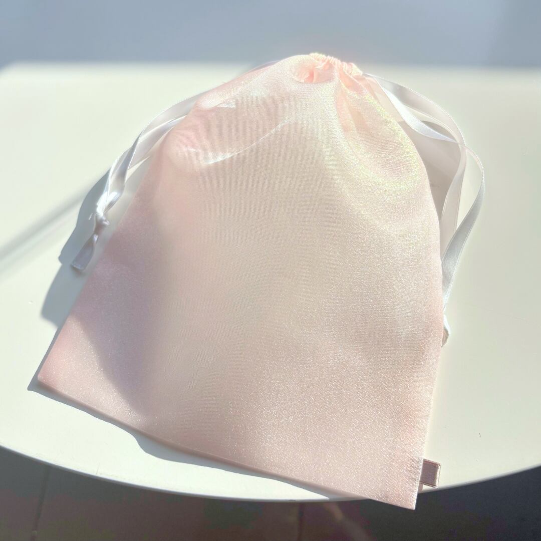日常アイテムにもこだわりたい方や、プチギフトとしても喜ばれる巾着です。巾着本体の生地からサテン紐にいたるまで、すべてウェディングドレスに使用していた素材を贅沢に使用。毎日の中で、さりげなくドレスの上質さを感じていただけます。