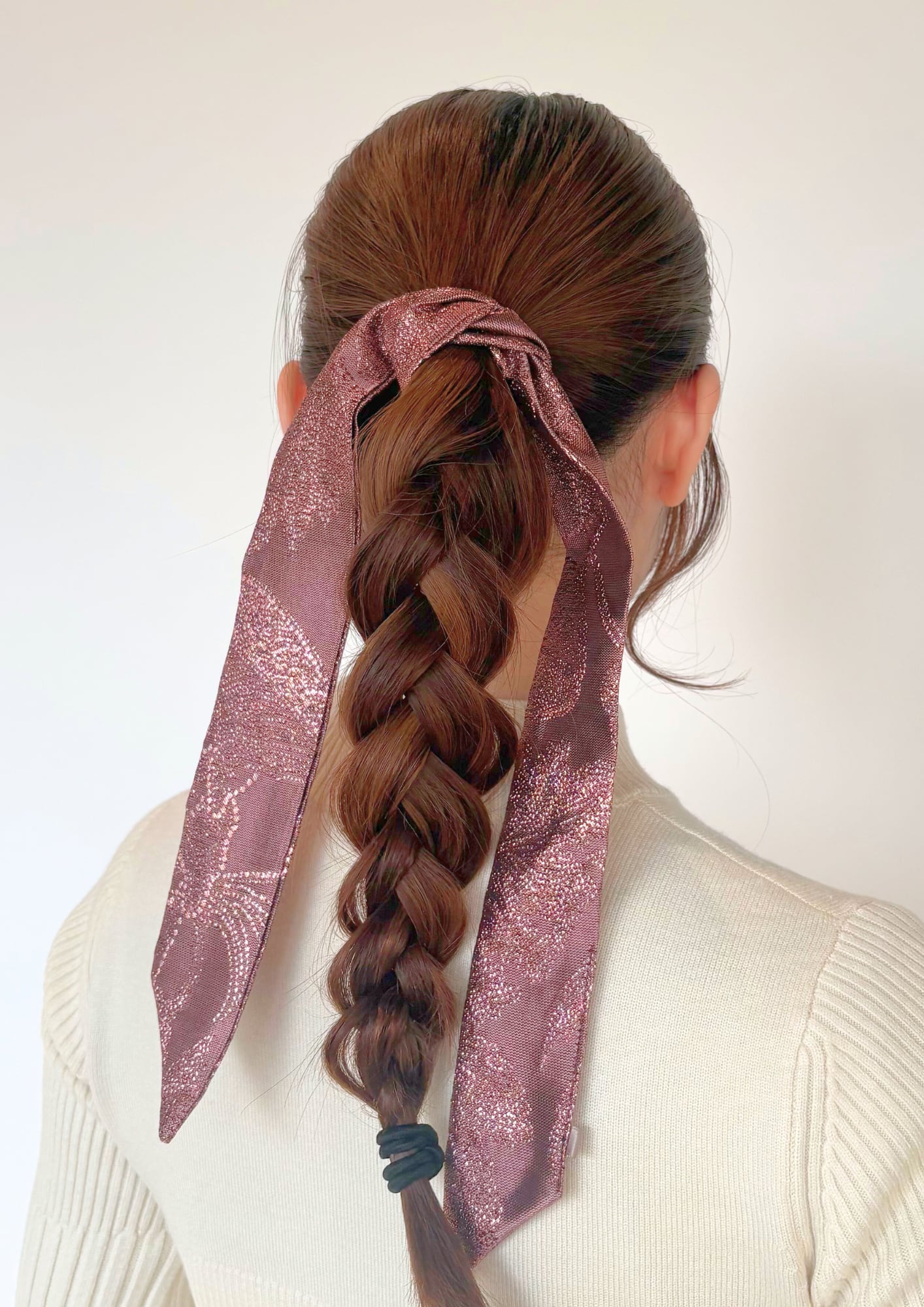 バッグのハンドルや首元、手首、ヘアアレンジなど幅広いシーンで使え、コーディネートが物足りないと感じたときも巻くだけで洗練された印象に。