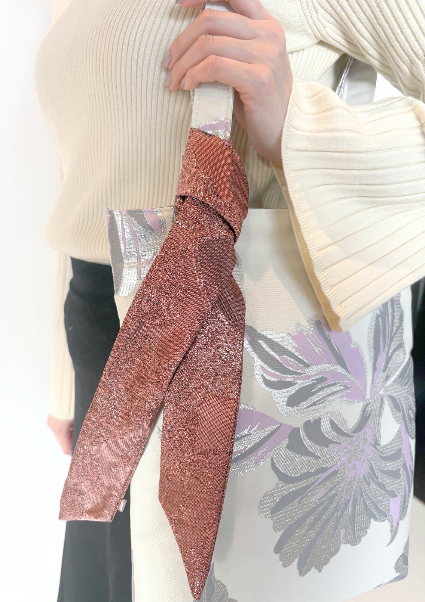上品な華やかさをさりげなく取り入れたい大人女性に向けた、ピンクのラメがきらめくツイリーです。